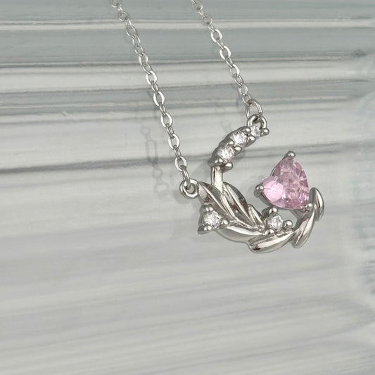 S925 Sterling Silver Elegant Pink Gemstone Necklace