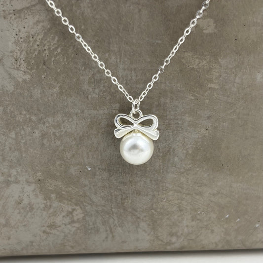 S925 Sterling Silver Freshwater Pearl Bow Necklace