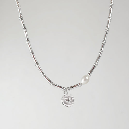 S925 Sterling Silver Heart Pendant Bamboo Necklace