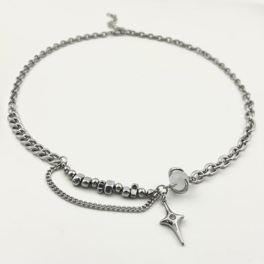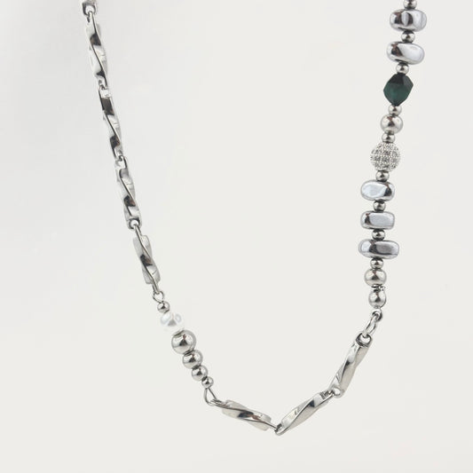 Titanium Steel White Crystals Black Chrysolite Patchwork Necklace