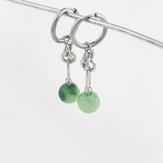 Titanium Steel Spliced Green Jade Earrings