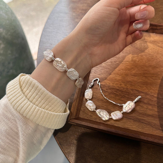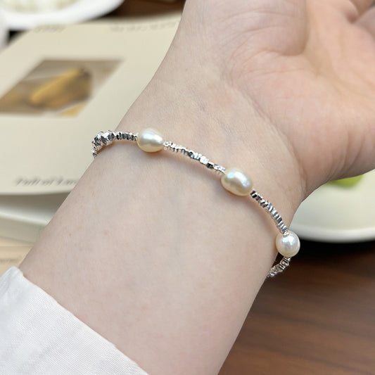 S925 Sterling Silver Freshwater Pearl Crushed Silver Bracelet
