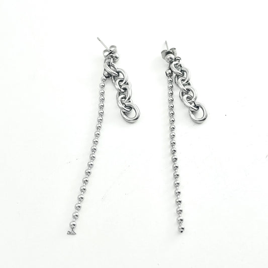Titanium-Steel Hybrid Chain Pendant Earrings
